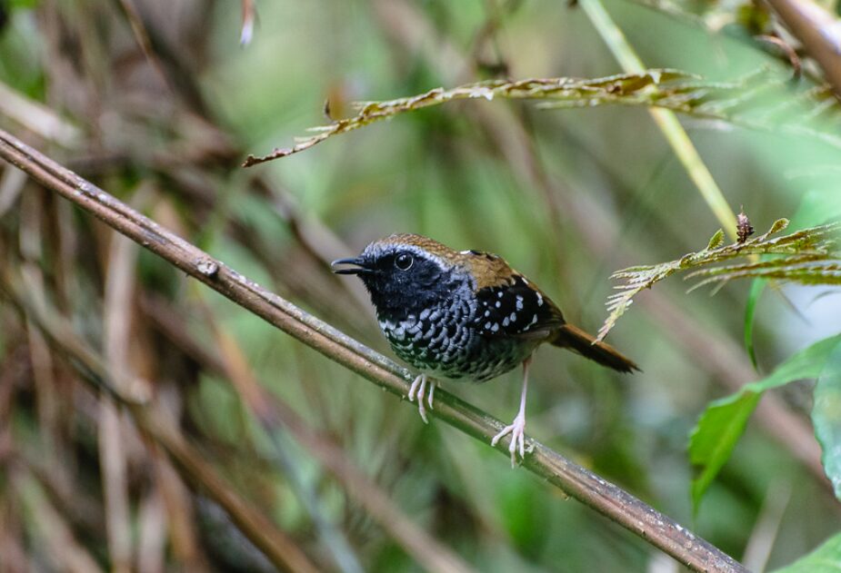 É uma ave que vive exclusivamente na Mata Atlântica.