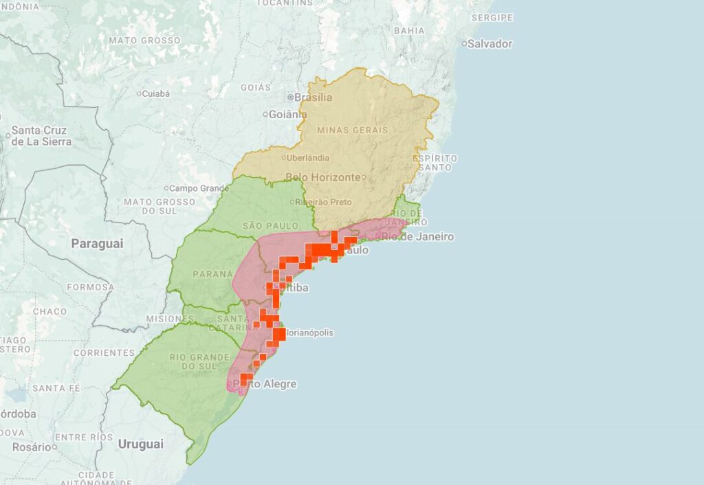 É uma ave endêmica da mata atlântica do sul e sudeste do Brasil.