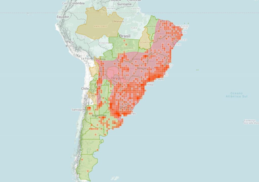 Está presente na América do Sul, em paÃses como Brasil, Argentina, Paraguai, BolÃvia e Uruguai.